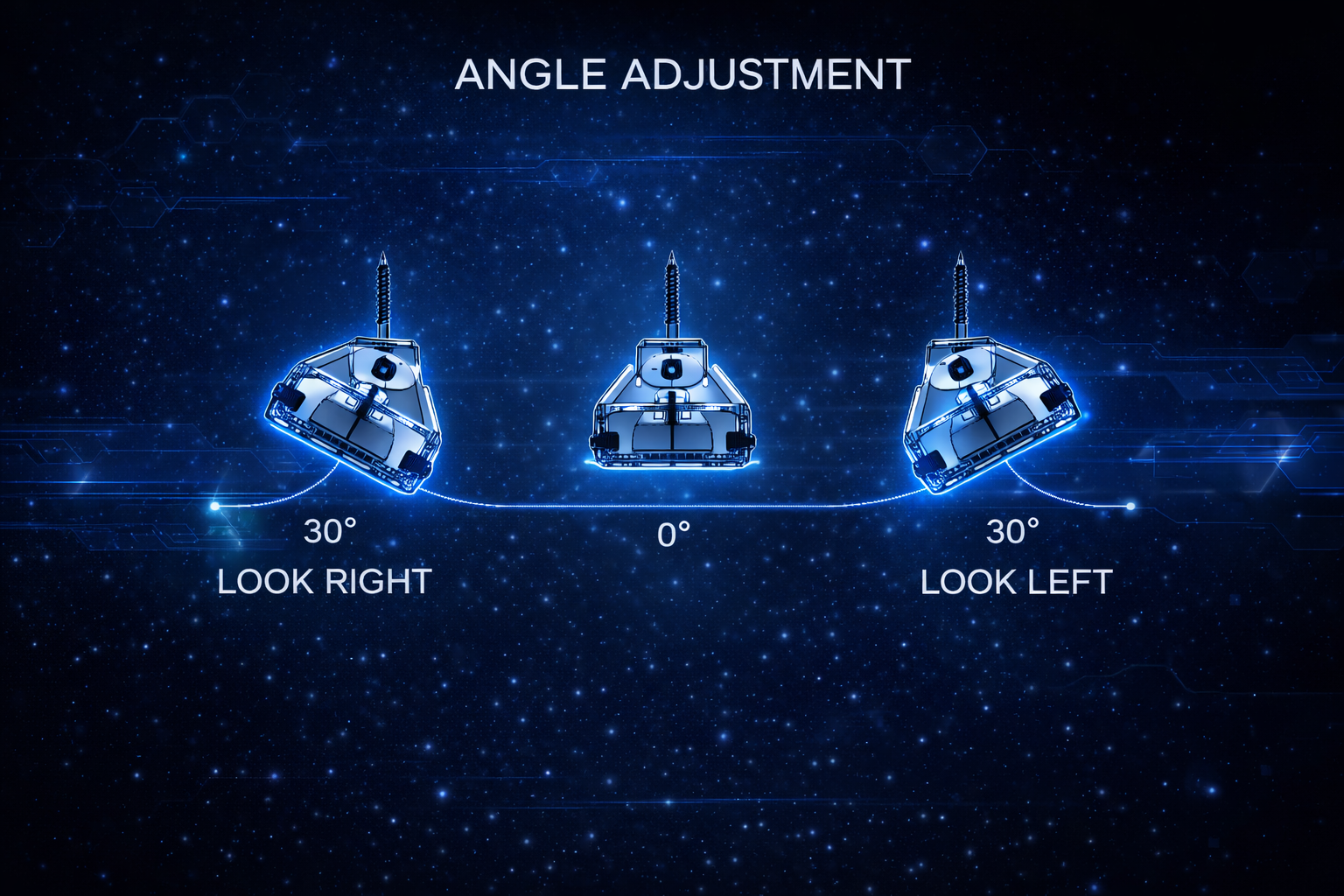 Adjustable 0°, 30° left, or 30° right for optimal camera view